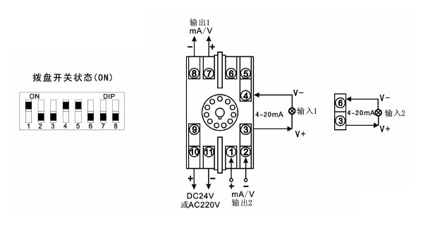 | 08 | Pt100 | -200~650℃ | 16 | 0~20mA | -1999~9999 |