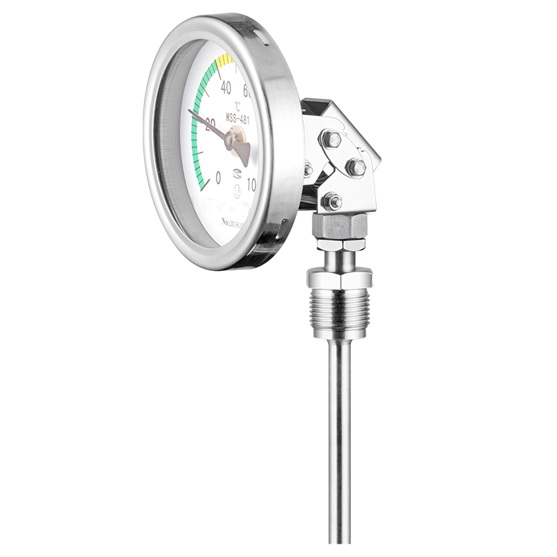 萬向型(可調(diào)角型)雙全屬溫度計,可根據(jù)需要調(diào)整為徑向、軸向或任意角度,便于工程設(shè)計和使用。