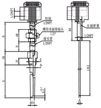 | 熱電偶 熱電阻 | 溫度套管U | E | D | 設(shè)計(jì)參數(shù) | 工作溫度 | 外鞘材質(zhì) | ||