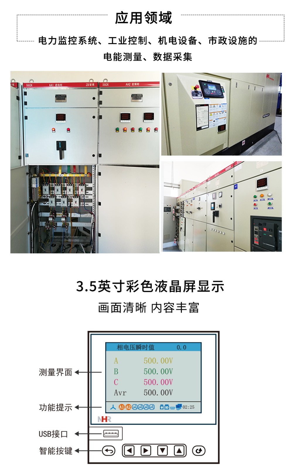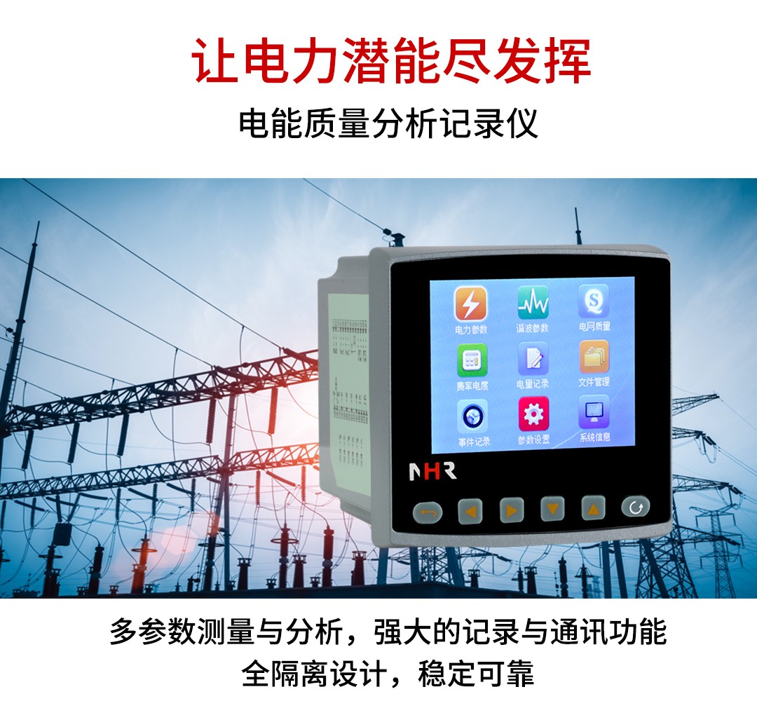 NHR-3900系列電能質(zhì)量分析記錄儀采用新進(jìn)的集成電路及數(shù)字采樣技術(shù),對(duì)三相電氣線路中的交流電流/電壓、 有功功率、無功功率、視在功率、功率因數(shù)、工頻周波、諧波、有功電能、無功電能、四象限電能、波峰系數(shù) 及不平衡度等進(jìn)行實(shí)時(shí)測(cè)量顯示與在線分析。
