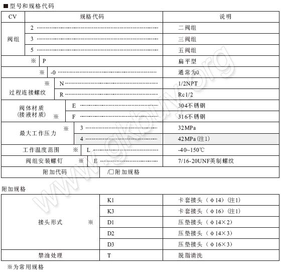CV系列閥組有扁平型二閥組、三閥組、五閥組及柱狀截止閥(帶排放塞或不帶排放塞)。扁平型三閥組、五閥組用于差壓變送器及其一體化組裝;扁平型二閥組及柱狀截止閥用于壓力變送器及其一體化組裝。CV系列閥組也可用于其他需要進(jìn)行壓力控制的儀表裝置。